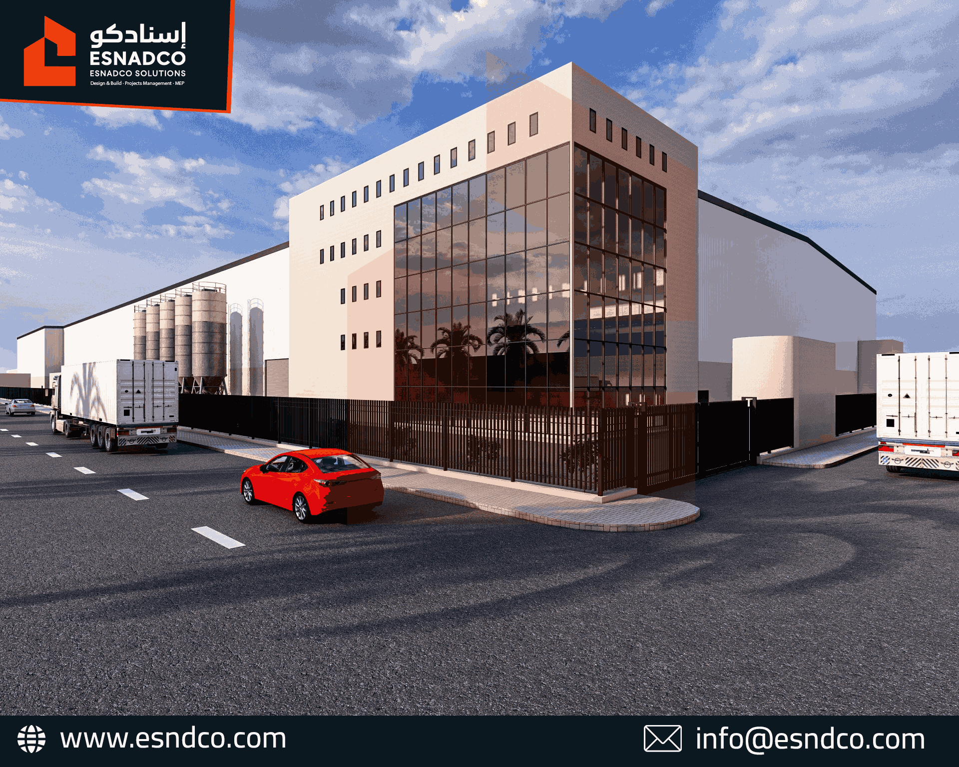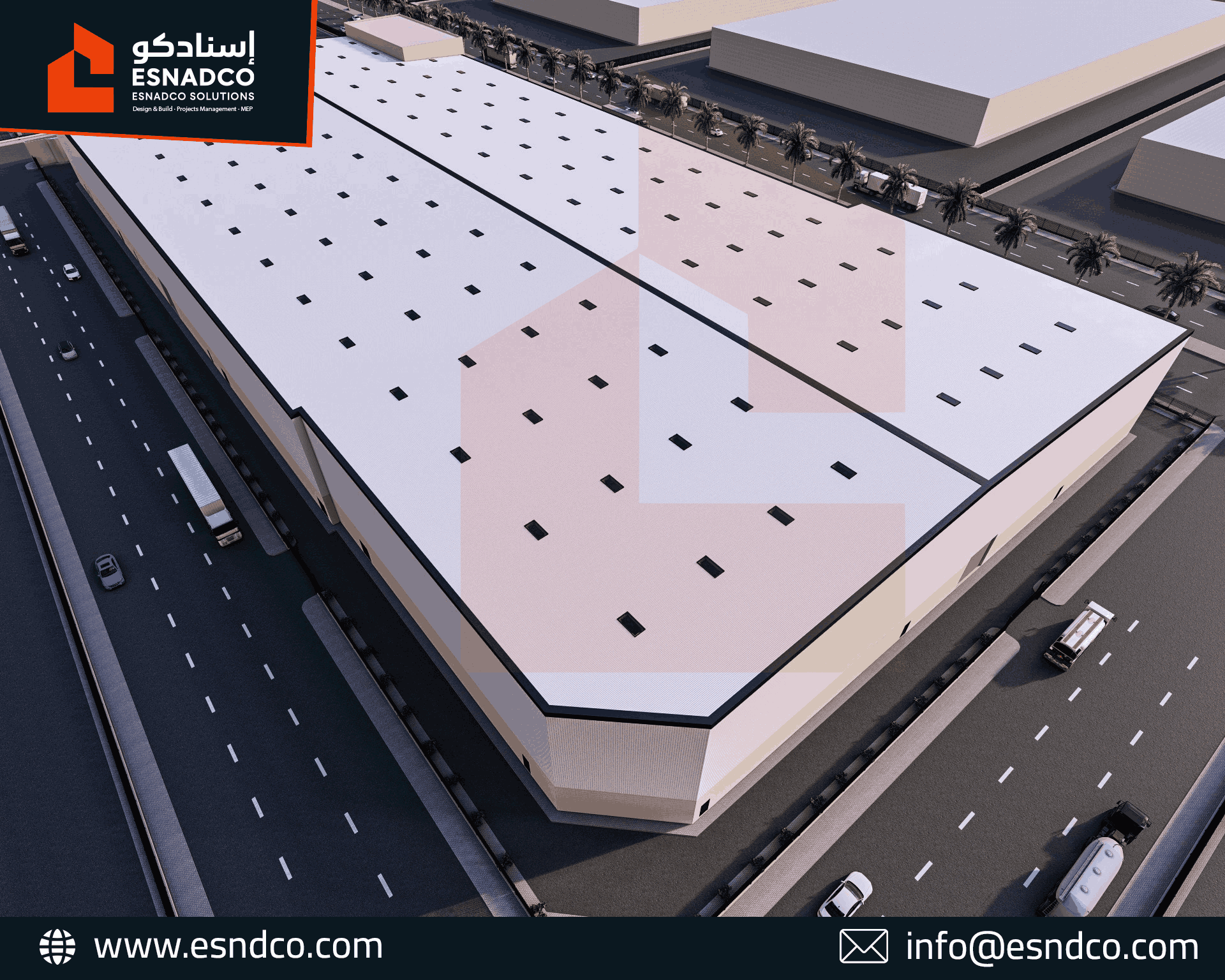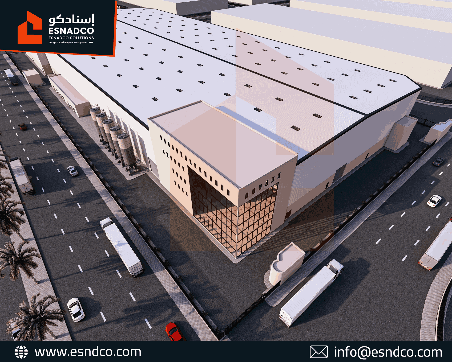 التنفيذ السريع: اعتمدت "إسنادكو" على نظام الهياكل المعدنية الجاهزة (Pre-Engineered Steel Buildings - PEBs) لتسريع عملية الإنشاءات في الموقع.