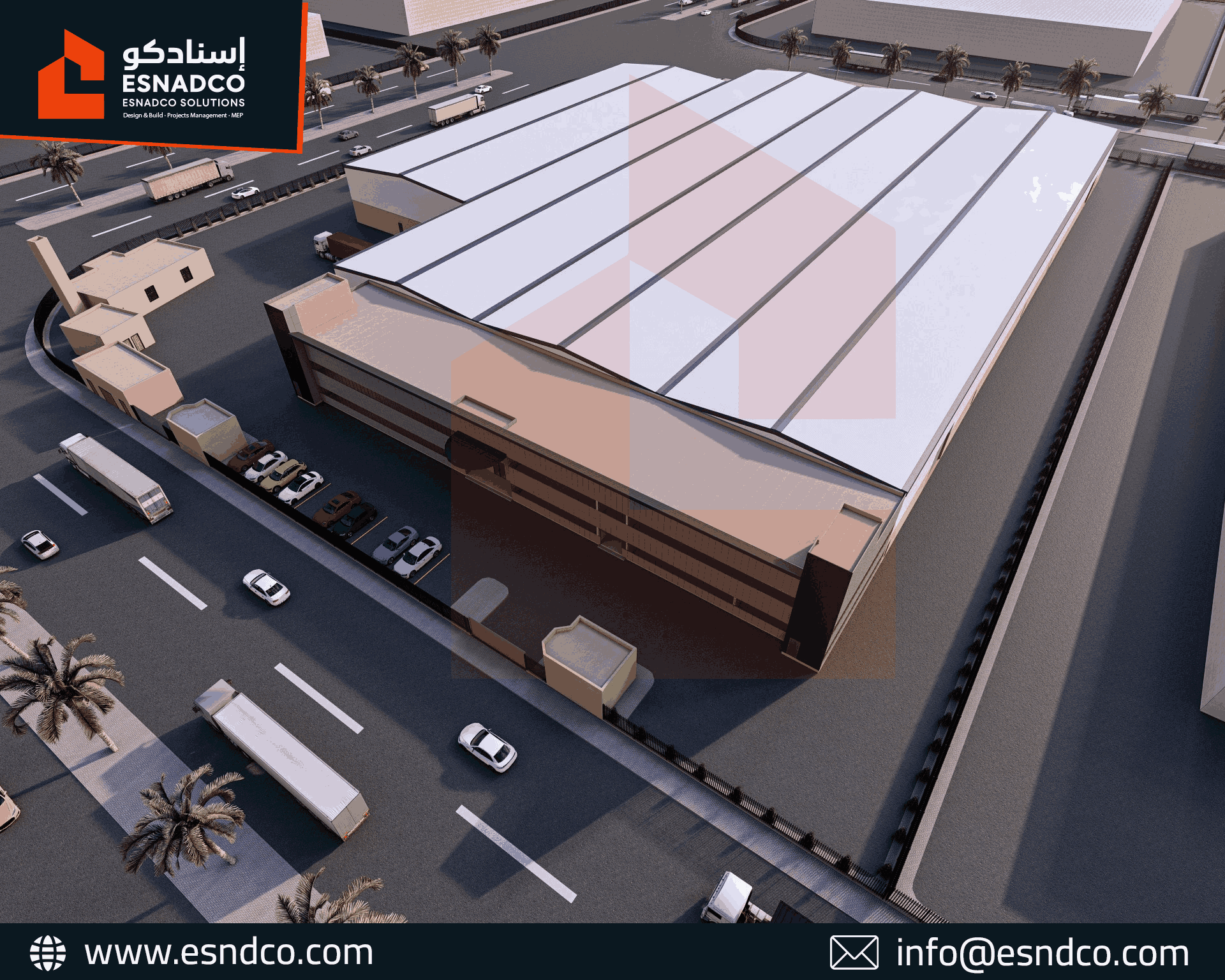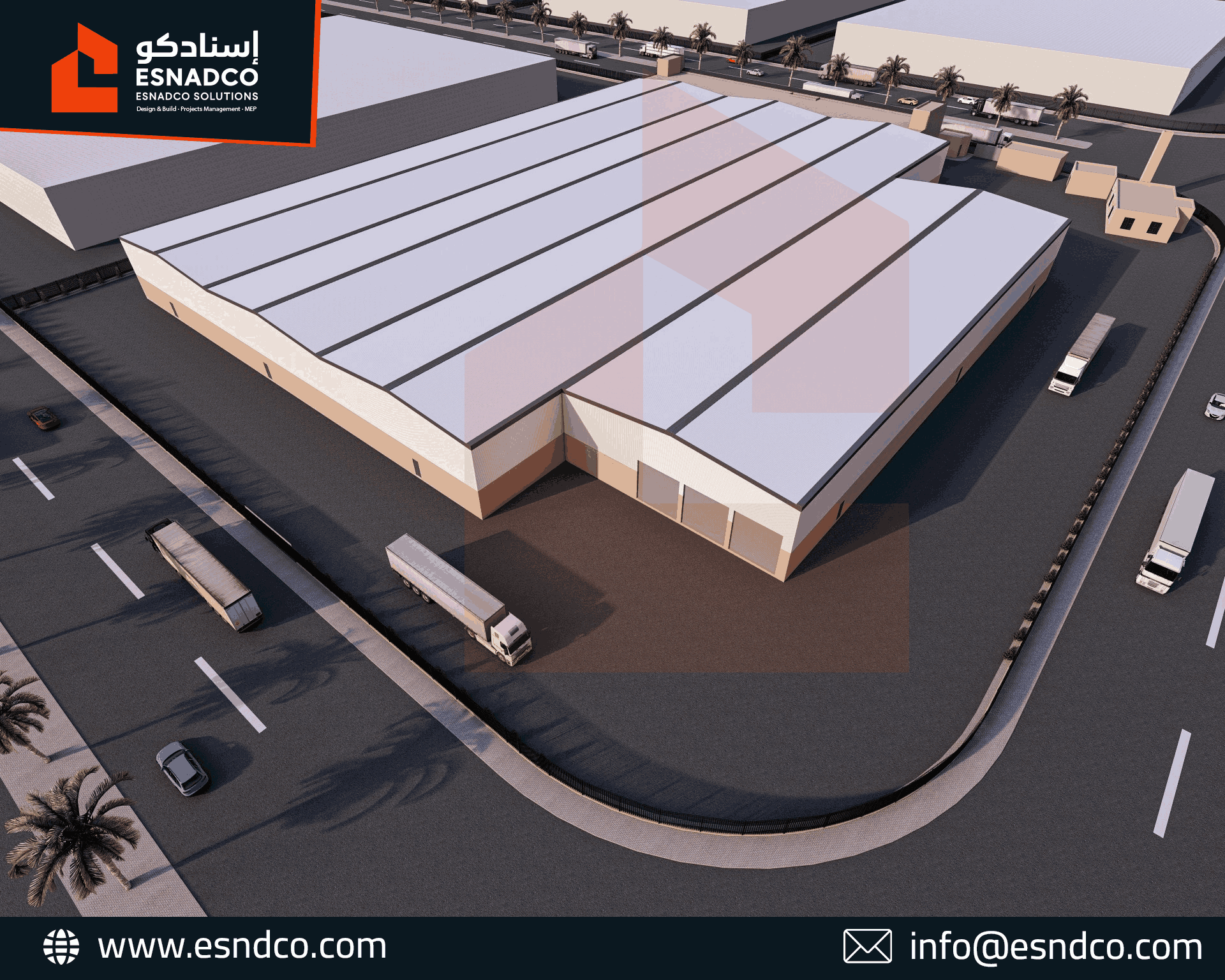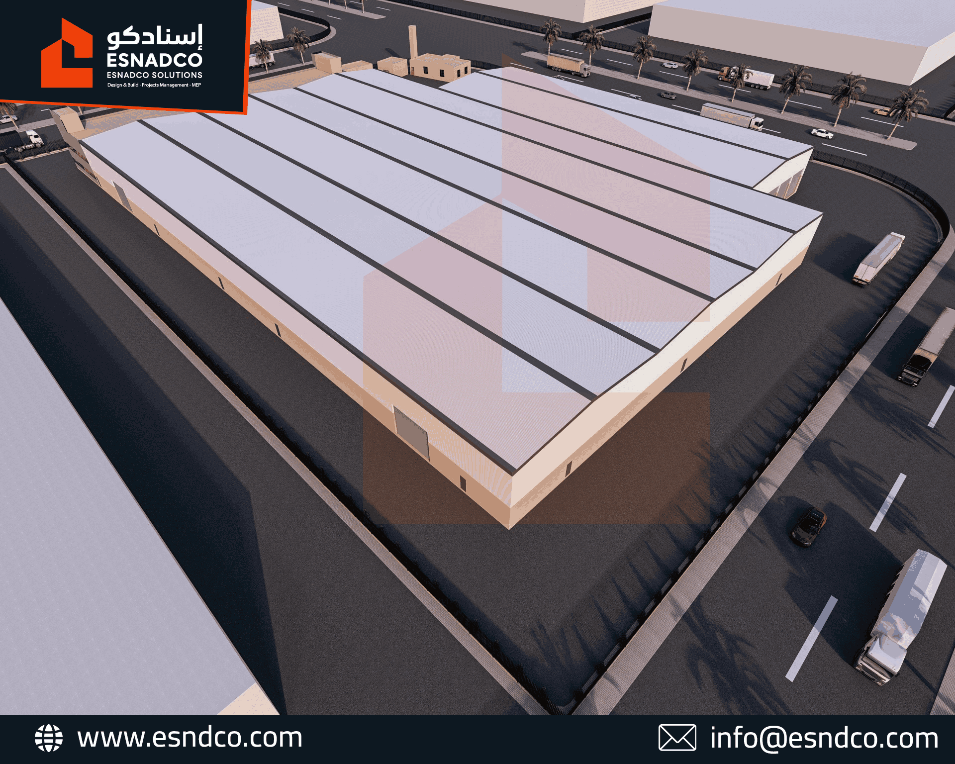 التخزين واللوجستيات: توفير مساحات واسعة ومرنة لتخزين الأنابيب الضخمة النهائية، مع تصميم أبواب وارتفاعات مناسبة لمرور الشاحنات وعمليات التحميل.